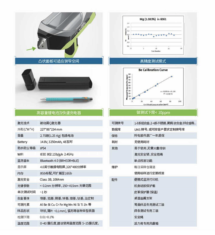 6、便攜式分析儀:便攜式LIBS分析儀適用于金屬及其牌號(hào)的識(shí)別、巖石種類鑒別等多種應(yīng)用領(lǐng)域,具有高激光功率,適用于更廣泛的分析樣品。