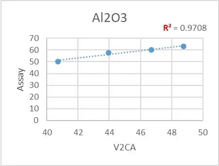 我們可以通過上圖發(fā)現(xiàn),Vanta Core (V2CA) 檢測結(jié)果與滴定法的化驗結(jié)果之間呈現(xiàn)了良好的線性,也印證了X射線熒光分析儀檢測的可靠性。在進行簡單的校準(zhǔn)后,可以使設(shè)備顯示理想的數(shù)值。