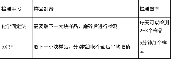 表:XRF和化學(xué)滴定法對于樣品制備的要求