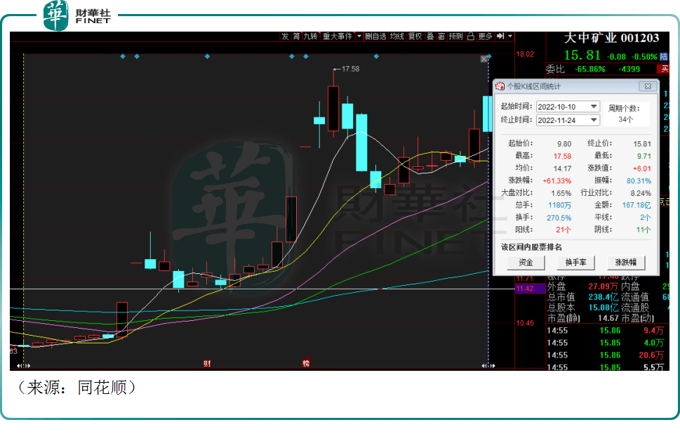 伴隨著大中礦業(yè)的涉鋰,其股價(jià)節(jié)節(jié)攀升,截至24日收盤(pán),大中礦業(yè)報(bào)收15.81元/股,10月初以來(lái)的累計(jì)漲幅超60%,總市值達(dá)238.4億元。