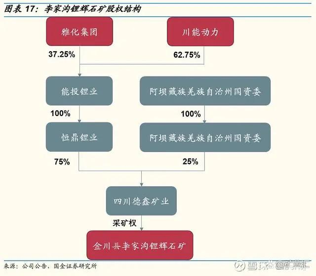 四川能投鋰業(yè)控制的德鑫礦業(yè)擁有李家溝鋰礦采礦權(quán),2021年,川能動(dòng)力以9.27億元完成對(duì)四川能投鋰業(yè)62.75%股權(quán)的收購(gòu),剩余股權(quán)(37.25%)歸屬于雅化集團(tuán)。