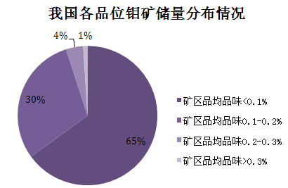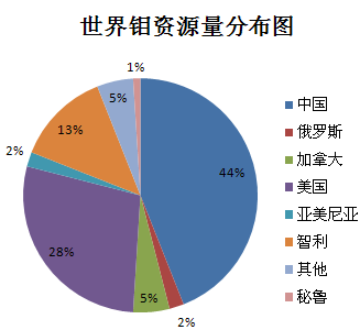 鉬在我國儲量居世界前列,陜西省華縣金堆鎮(zhèn)、遼寧葫蘆島、吉林、山西、河南、福建、廣東、湖南、四川、江西、甘肅、內(nèi)蒙等省均有鉬礦,且儲量大,開發(fā)條件好,產(chǎn)量在全國占有重要地位。具有工業(yè)價值的鉬礦物主要是輝鉬礦,約有99%的鉬礦是以輝鉬礦(狀態(tài)開采出來的。我國鉬精礦主要對俄羅斯、日本以及西方國家出口。