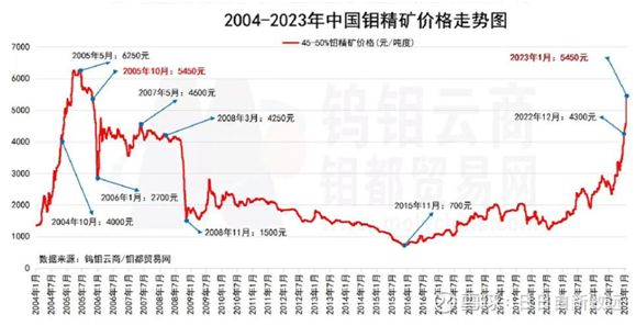 截至1月30日,據(jù)大宗原材料網(wǎng)站億覽網(wǎng)披露,鉬精礦價格重回2005年10月5450元的高點(diǎn)。自2015年11月至今,國內(nèi)鉬精礦價格已上漲6.78倍。