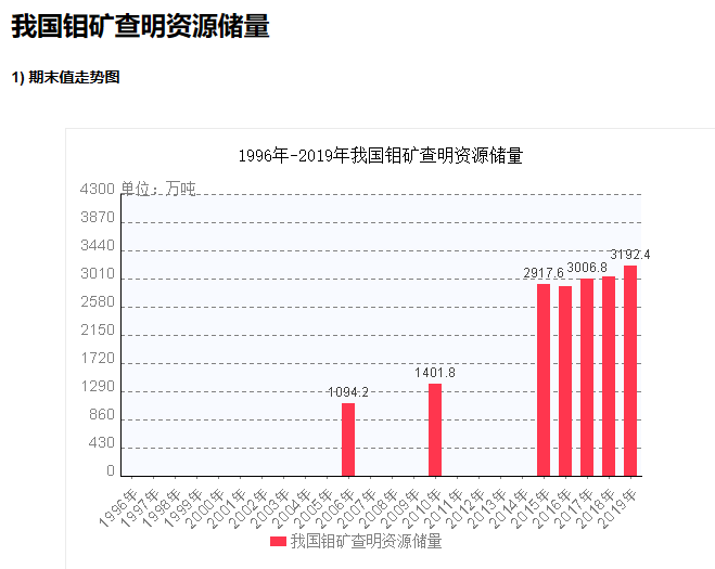 鉬在地殼中的平均含量約為0.00011%,已發(fā)現(xiàn)的鉬礦約有20種,其中最具工業(yè)價值的是輝鉬礦,其次為鎢相鈣礦、鐵鉑礦、彩鉬鉛礦、鉑銅礦等。根據(jù)美國地質(zhì)調(diào)查局2015年發(fā)布數(shù)據(jù),全球鉬資源儲量約為1100萬噸,探明儲量約為1940萬噸。