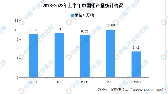 我國2022年第一季度鉬的產(chǎn)量為25855噸,環(huán)比減少了2%,但同比增加了6%;第二季度產(chǎn)量為28621.5噸,環(huán)比增加了4%,同比增加了14%。