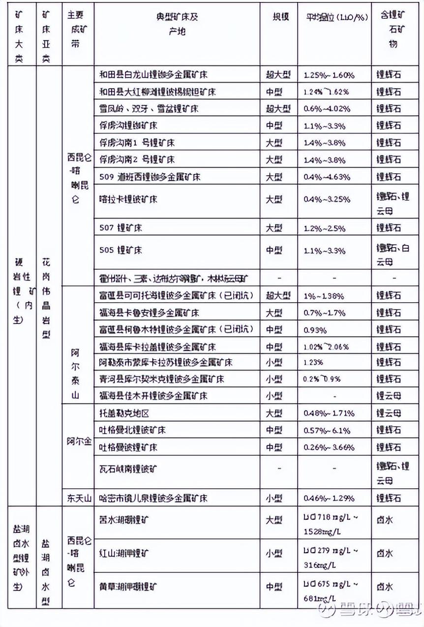 新疆鋰礦主要為硬巖型鋰礦、鹽湖鹵水型鋰礦兩類,主要分布于四條成礦帶和三大鹽湖。