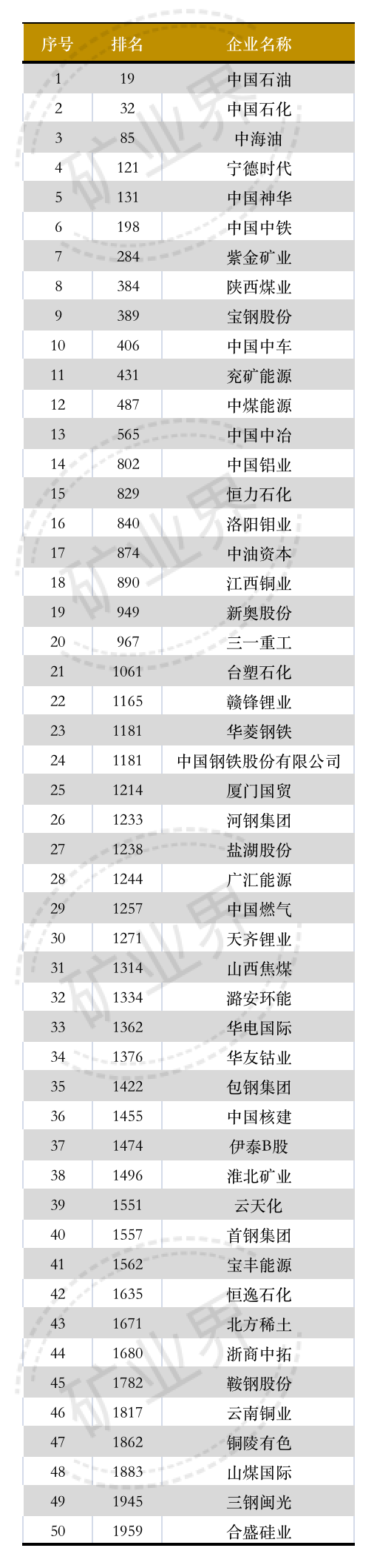 整理發(fā)現(xiàn),上榜的中國礦業(yè)相關企業(yè)共有50家,中國石油、中國石化和中海油這“三桶油”與上年相比,依然穩(wěn)坐中國礦業(yè)相關企業(yè)前三甲寶座。其中,中海油排名升幅最大,從去年第133位升至今年第85位 。