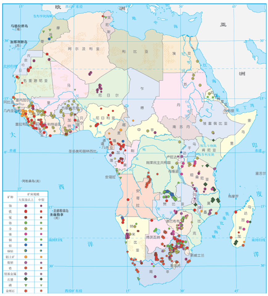 非洲大陸是世界最古老的大陸之一,經歷了復雜的地質構造-巖漿活動-成礦作用演化過程,成礦地質條件優(yōu)越,礦產資源極為豐富,而且礦產種類齊全、儲量巨大,被稱為世界礦產資源的博物館,是世界著名的礦產資源富集地區(qū)之一。