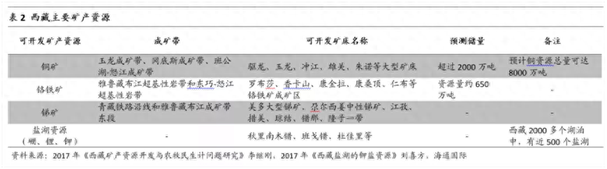 西藏位于亞洲板塊和印度板塊的碰撞地帶,兩大板塊碰撞造山而發(fā)生的成礦作用使西藏擁有極為豐富的礦產(chǎn)資源。據(jù)西藏自治區(qū)人民政府官網(wǎng)顯示,西藏目前已發(fā)現(xiàn)的礦種(亞種)達到103種,其中銅、鉻金屬保有資源儲量與鹽湖鋰資源遠景儲量位居全國第一。據(jù)自然資源部的估計,西部蘊藏著我國65%的銅資源、59%的鋅資源和55%的鉛資源。