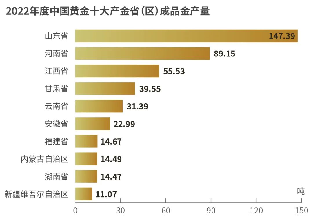 披露了2022年度我國黃金產(chǎn)量分布等情況