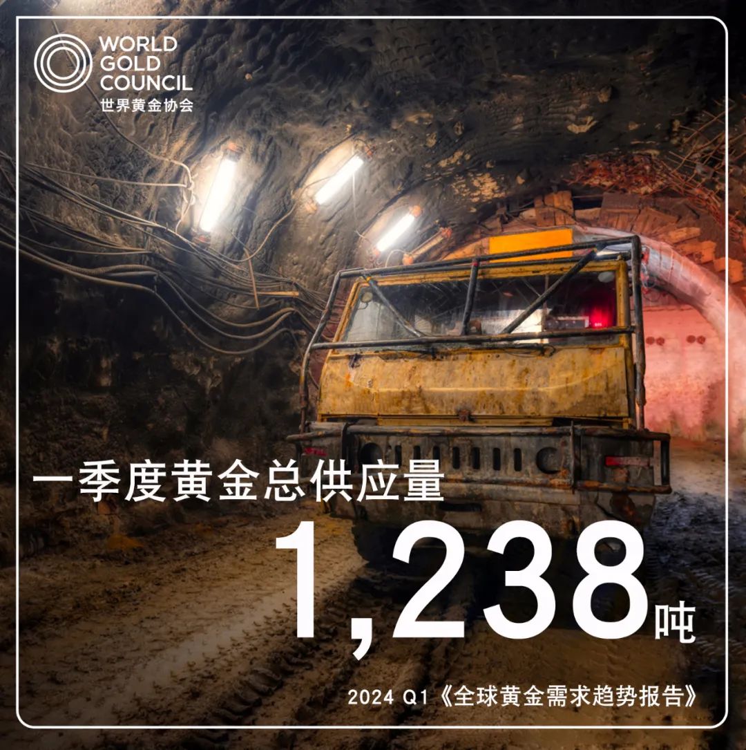 黃金供應(yīng)方面,一季度,全球黃金總供應(yīng)量達(dá)1238噸,同比增長3%。其中,金礦產(chǎn)量同比增長4%至893噸,創(chuàng)一季度新高。另外,一些投資者趁金價走高進行獲利了結(jié),一季度回收金總量也創(chuàng)下自2020年三季度以來的季度新高,同比增長12%至351噸。