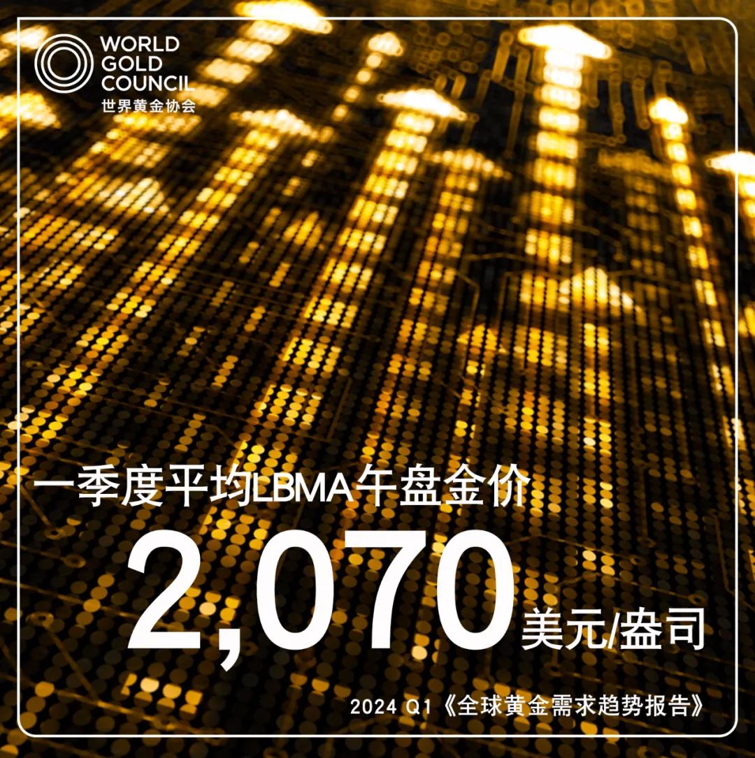 來自場外交易市場穩(wěn)健的投資需求、全球央行的持續(xù)購金及亞洲買家日益高漲的需求,共同推動一季度黃金均價創(chuàng)下歷史新高,達(dá)到2070美元/盎司,同比增長10%,環(huán)比增長5%。具體來看,盡管金價屢創(chuàng)新高,但全球金飾需求總體仍保持韌性,同比僅下降2%至479噸,但仍然高于過去5年一季度需求的平均水平(465噸)3%。亞洲地區(qū)金飾需求的上漲抵消了歐洲和北美地區(qū)需求的下降。