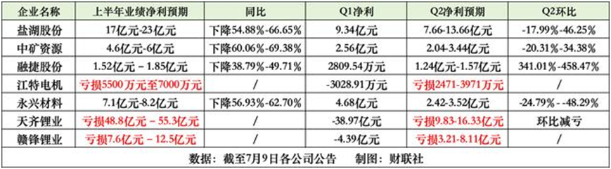 7月10日,另一鋰業(yè)“龍頭”贛鋒鋰業(yè)發(fā)布公告,預(yù)計上半年凈利虧損7.6億元–12.5億元,上年同期盈利58.5億元。