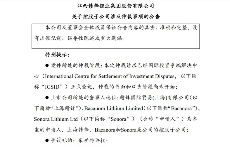 從2019年起,贛鋒鋰業(yè)多次增資收購墨西哥Sonora鋰黏土項目(以下簡稱Sonora項目),終于在2022年8月買下Sonora鋰礦的所有股權(quán)。但在去年8月,墨西哥礦業(yè)總局發(fā)出通知取消贛鋒鋰業(yè)關(guān)聯(lián)公司Bacanora在墨西哥持有的Sonora項目的9個礦產(chǎn)特許權(quán),即贛鋒鋰業(yè)不再擁有在墨西哥的這9個鋰礦的經(jīng)營權(quán)和采礦權(quán)等。
