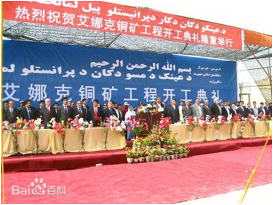 根據(jù)最終簽署的協(xié)議,艾娜克銅礦項(xiàng)目生產(chǎn)規(guī)模為年產(chǎn)精煉銅22萬噸(計(jì)劃擴(kuò)大到年產(chǎn)30萬噸),項(xiàng)目建設(shè)期5年,開采期限30年。配套設(shè)施包括一個(gè)40萬千瓦的火電廠、一個(gè)水源地泵站和一個(gè)磷肥廠,以及學(xué)校、醫(yī)院、清真寺等公共服務(wù)設(shè)施,還計(jì)劃修建鋼廠和鐵路等。總投資將超過100億美元。