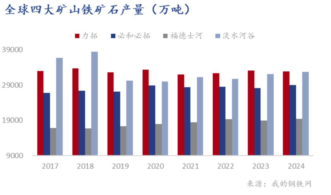 據(jù)統(tǒng)計,四大礦山2024年鐵礦石總產量達11.39億噸,同比增加1600萬噸,增幅1.4%。具體來看,澳大利亞三大礦山巨頭表現(xiàn)相對平穩(wěn),合計產量超過8億噸,同比增長930萬噸,而巴西的淡水河谷表現(xiàn)則相對突出,淡水河谷2024年鐵礦石產量達到3.28億噸,同比增加652萬噸,超過原定的3.1-3.2億噸指導目標,創(chuàng)下2018年以來的新高。同時,淡水河谷全年鐵礦石銷量實現(xiàn)了約3.07億噸,同比增長4.02%,達到了2019年以來最好的銷量數(shù)據(jù)。