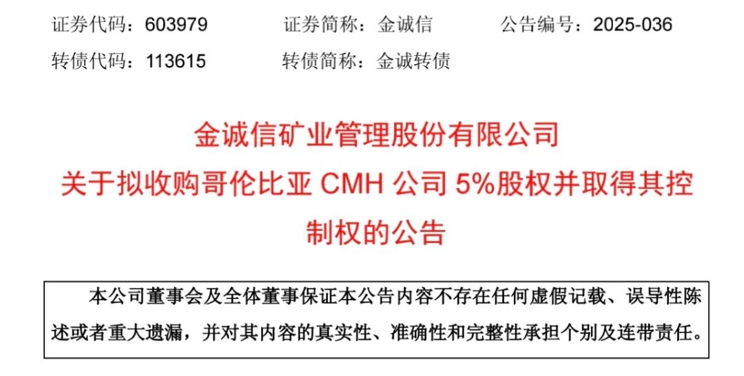 金誠信(603979)繼續(xù)加大海外礦業(yè)布局。5月8日晚,金誠信公告,擬收購哥倫比亞CMH公司5%股權(quán),并取得其控制權(quán)。公司同時(shí)擬投資2.31億美元建設(shè)Alacran銅金銀礦項(xiàng)目。