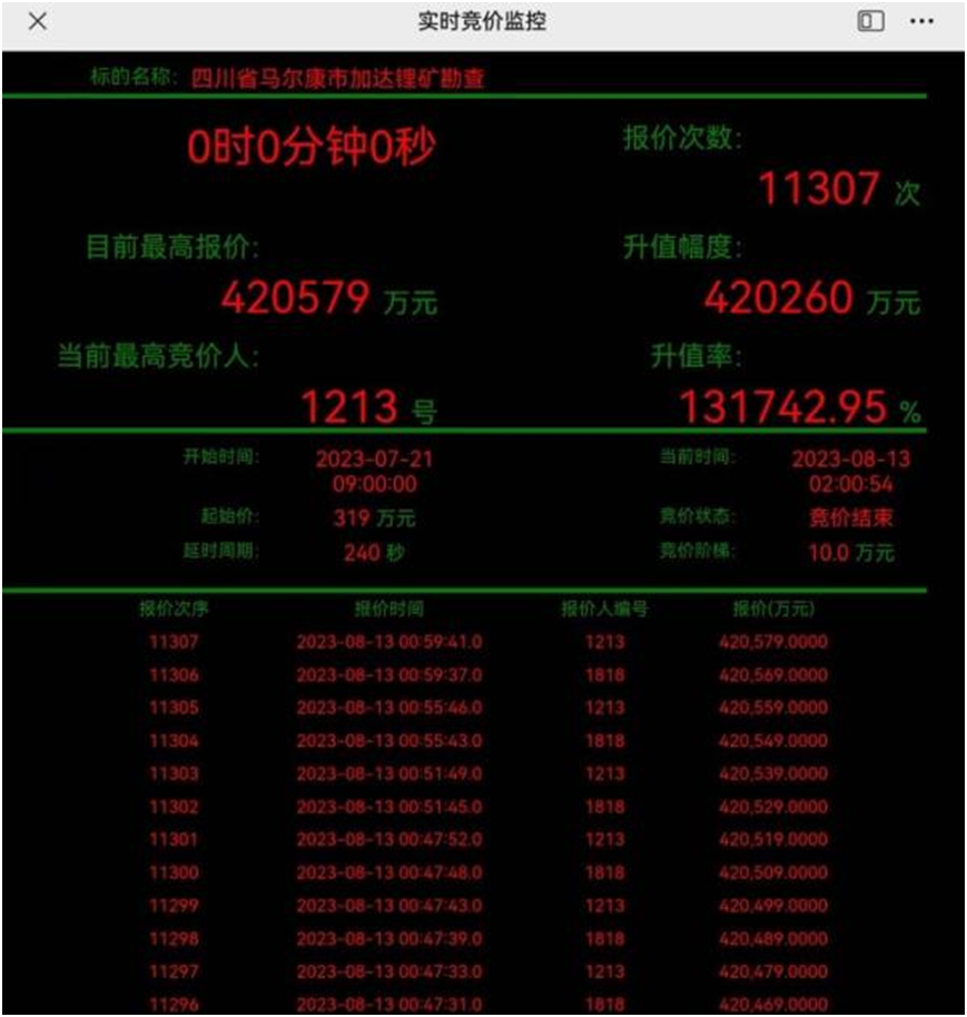 鏖戰(zhàn)三天三夜,四川省馬爾康市加達鋰礦勘探權拍賣塵埃落定,最終大中礦業(yè)力壓群雄拔得頭籌