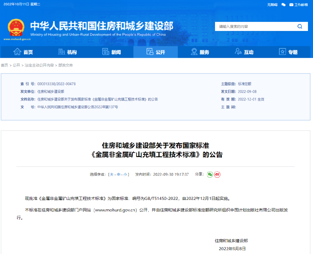 重磅來(lái)襲!我國(guó)首次發(fā)布金屬非金屬礦石填充工程技術(shù)標(biāo)準(zhǔn)