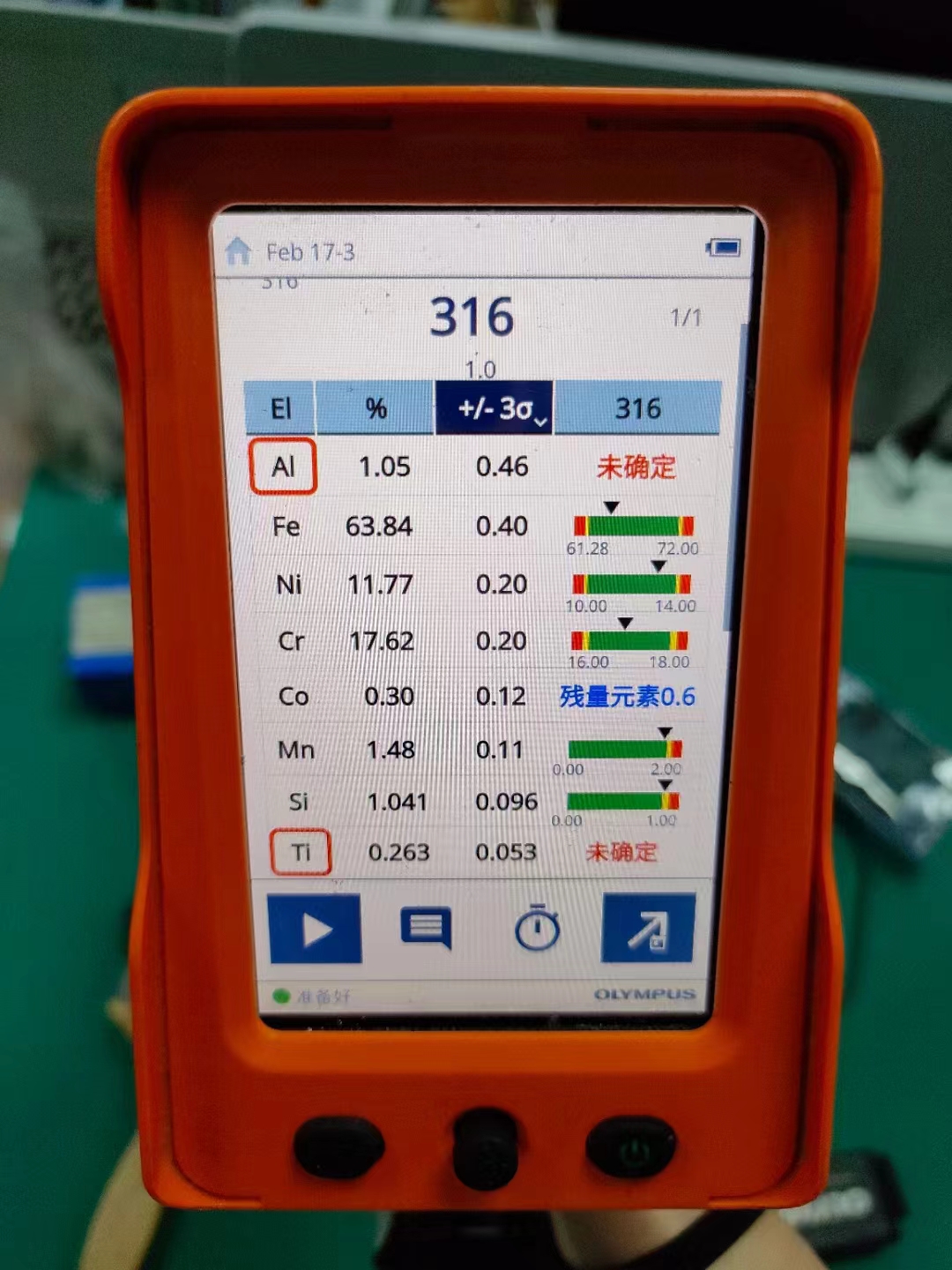 5)可在幾秒內(nèi)辨認(rèn)合金牌號(hào),并且屏幕會(huì)清晰顯示出牌號(hào)對(duì)比信息以及元素含量百分;