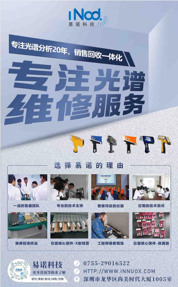 易諾科技深耕光譜行業(yè)20年,銷售維修一體化,擁有專業(yè)的維修技術(shù)人員和貼心的服務(wù)宗旨。專業(yè)解決處理死機、黑屏、零件更換、屏幕碎裂、系統(tǒng)升級等,讓儀器完好運轉(zhuǎn),為國內(nèi)廣大擁有手持光譜儀群體提供長期光譜儀維修服務(wù),多年來深得客戶的好評!我司配件配備充足、交貨迅速、質(zhì)量優(yōu)越,外地客戶維修光譜儀可通過物流郵寄儀器到公司,性價比高!